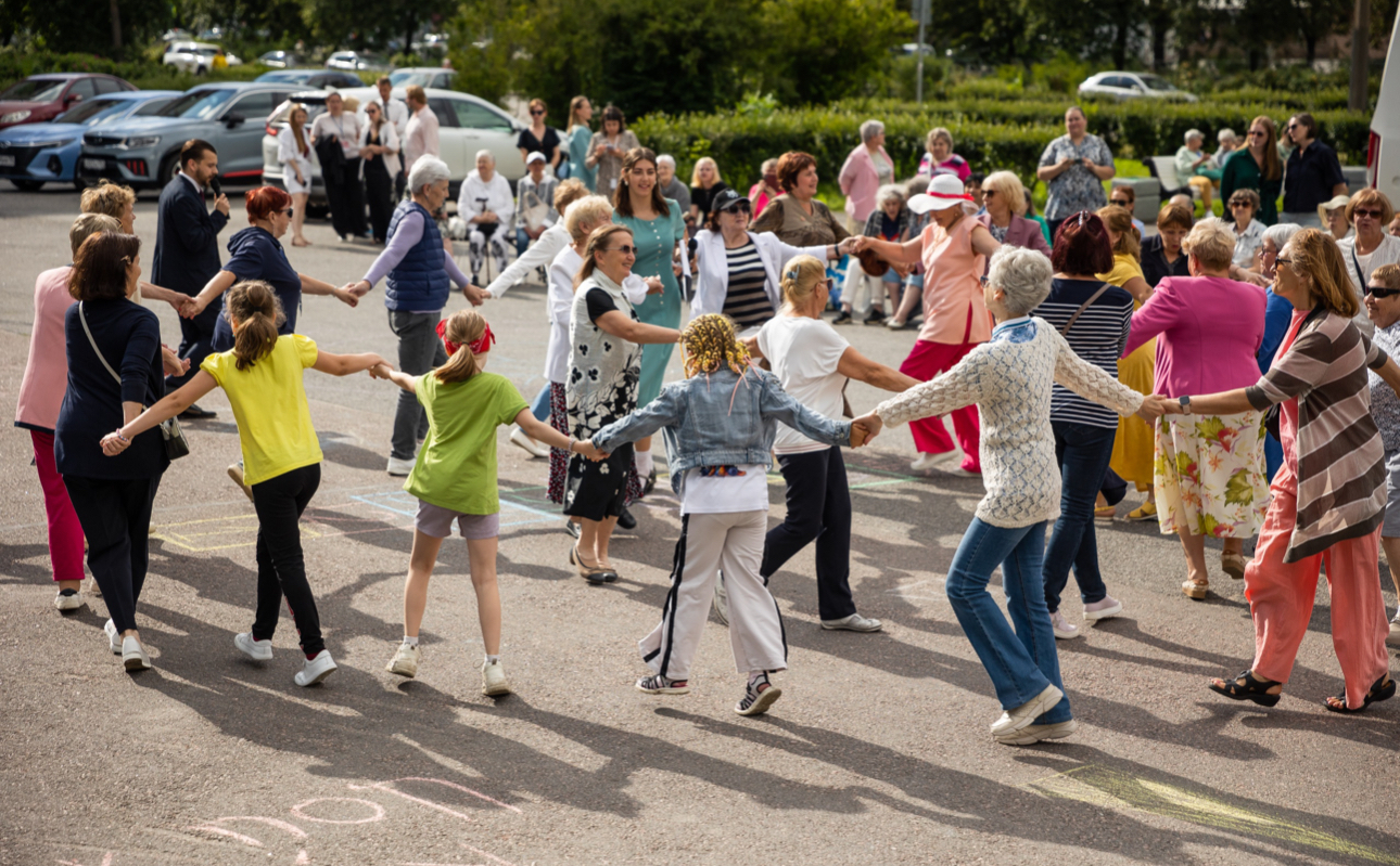 🎶 Исполнение песен на гитаре от Оксаны Бересневой (ансамбль «Мелодия») – которой подпевали все – пробудило память о юных годах. Под живой вокал можно было и потанцевать. Для всех выступили солисты Приморского культурного центра, Наталья Комарова и Валентина Флоренская (студия эстрадного вокала «Фортуна»), Антон Шляхтин (вокальная студия «Ремикс») и Мария Дашкова (студия «ГолосОк»), чьи песни пригласили на белый танец, дискотеку или даже вальс. В ходе мероприятия прошли мастер-классы от Екатерины Евсеенко, Виктории Жихаревой и Екатерины Заболоцкой по Zumba Gold – свободной танцевальной программе для золотого возраста. А в перерывах между активностями гости насладились выступлениями с танцевальными частушками от коллектива «Азарт», рок-н-роллом от артистов КЦСОН Приморского района.